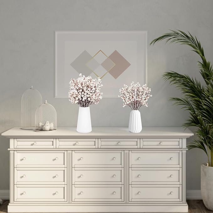 - Easy to Care: After receiving the silk flowers for home decor indoor, gently shake it to let the excess silk cloth fall off. Flower stems can be adjusted freely to make them more fluffy and beautiful. Faux flowers for vase do not need water, sunshine, or fertilizer; Fake flower will never wither and fall. Baby’s breath artificial flowers will add extra vitality and a natural sense to your home or Christmas