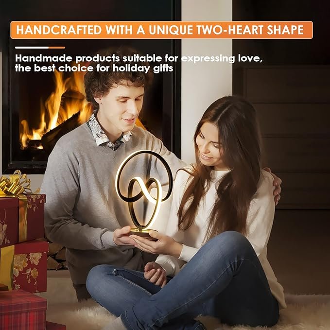 - Handmade heart design – This spiral LED table lamp uses the unique design of two hearts connected to each other. 5.2×8.27×10.63 inches small table lamp for easy movement. Even without the lights on, this touch dimmable bedside lamp is a nice decoration. Each unique lamp is handmade. It’s the perfect wishlist for an important holiday.
